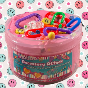 Brace yourself for "Accessory Attack" - a slime explosion straight from the streets of Harajuku! This ice cream slime masterpiece is bursting with colorful floam beads and quirky decora fashion add-ins that capture Japan's kawaii culture in all its chaotic glory. Every stretch reveals a new surprise as tiny accessories emerge from the gooey goodness! The tangy Sour Patch Kids scent adds the perfect punch of playful nostalgia to this sensory overload. It's fashion-forward fidgeting that's as extra as your most outrageous outfit - squish, stretch, and embrace the delightful madness!