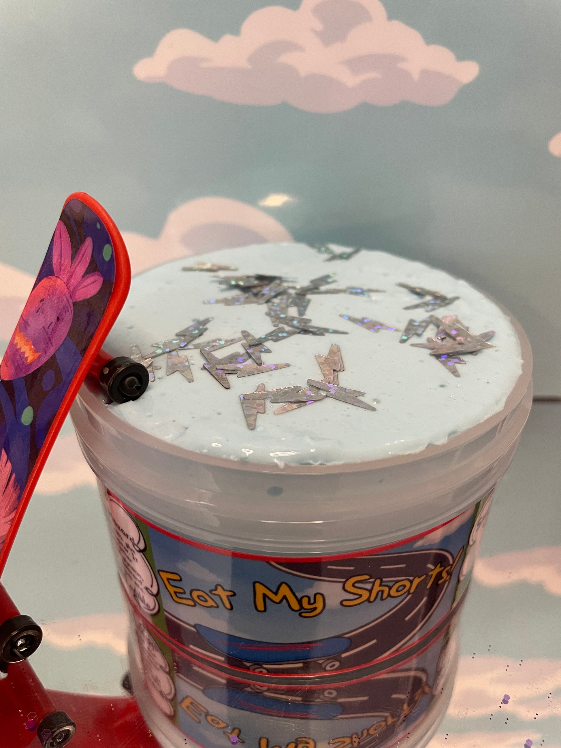 Taste the fun with Eat my shorts slime! This chewipop-textured slime is delightfully chewy and scented like sourpatch kids. Enjoy a playful pop of flavor with every chew. (Warning: do not actually eat. But have a blast playing with it!)