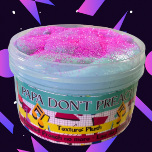 Papa don't preach slime, featuring the new Sparkle Nanny texture called plush. Thick and chewy with great pops and a scent of defiance. Unleash your inner rebel with Papa don't preach!