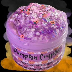 Dive into the mysterious fun of Pumpkin Cryptid! This new slime features a stretchy taffy gloss texture topped with crunchy perlite for extra sensory delight. Infused with cozy scents of spiced pumpkin, cedar, and a hint of smoky mystery, it’s perfect for fall slime lovers who crave seasonal magic and tactile adventure. Let your fingers explore and your imagination run wild!